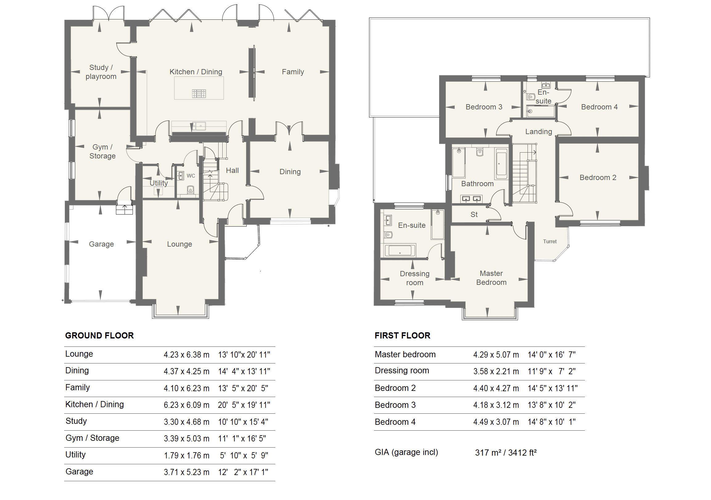 There are four spacious double bedrooms on the first floor. The master bedroom provides a fully fitted dressing room and a luxurious en suite with a walk-in shower and bath. There is second en suite bedroom, while two additional bedrooms share a stunning family bathroom. There is also a delightful reading nook nestled within the feature turret.